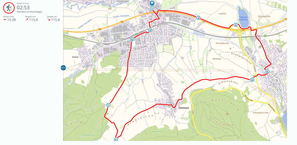 - Start und Ziel der Etappen bei der Kletterhalle > Ein- und Ausstieg zwischen den Etappen möglich